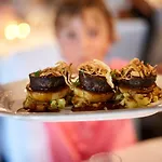 På restauranten kan man nyde lavet på bestilling om morgenen før arbejde eller sightseeing. Gæsterne kan slappe af på hotellets terrassebar med en favoritdrink. Området har Wohnzimmer som serverer tysk køkken.